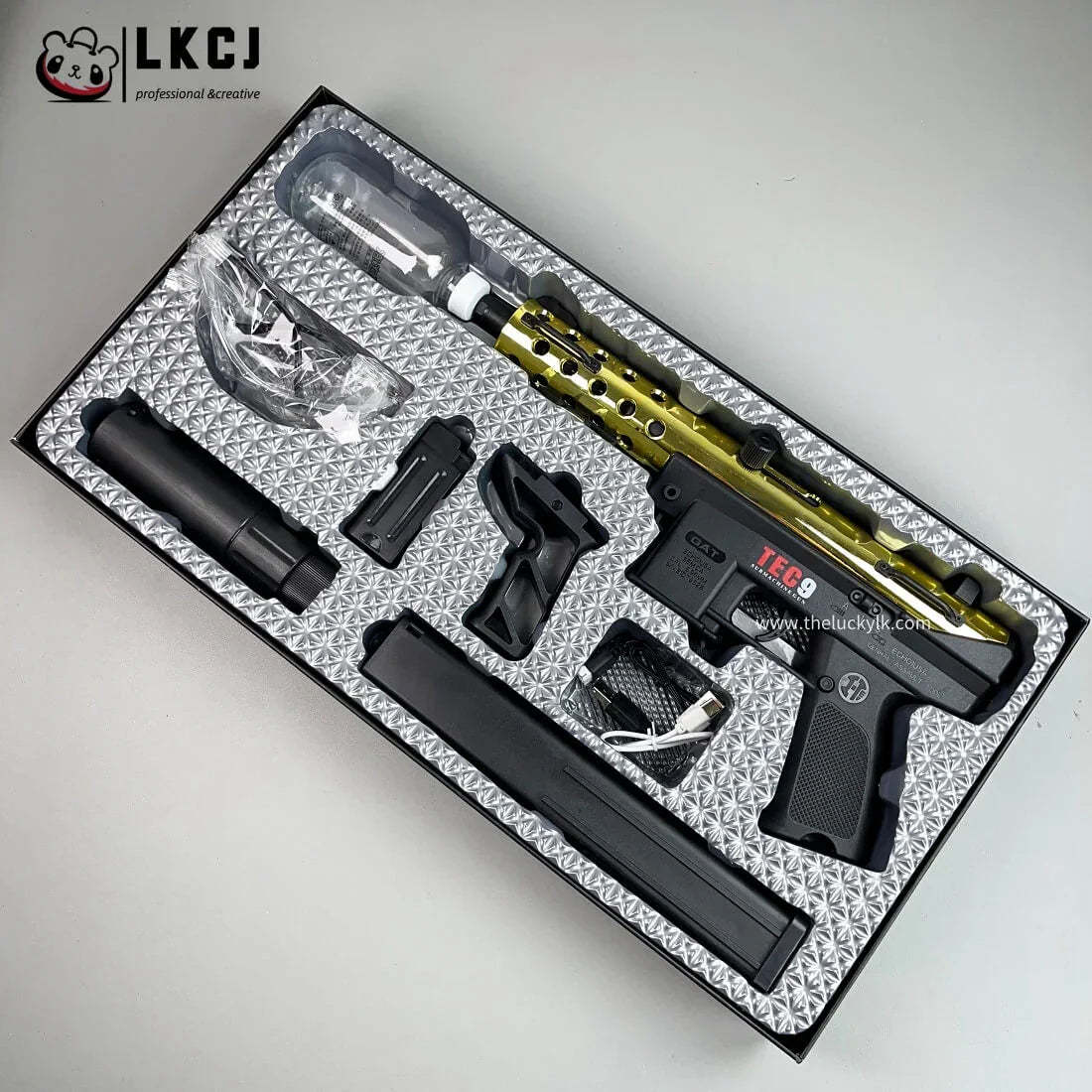 • 1 x Gold/Sliver TEC9 Gel Blaster